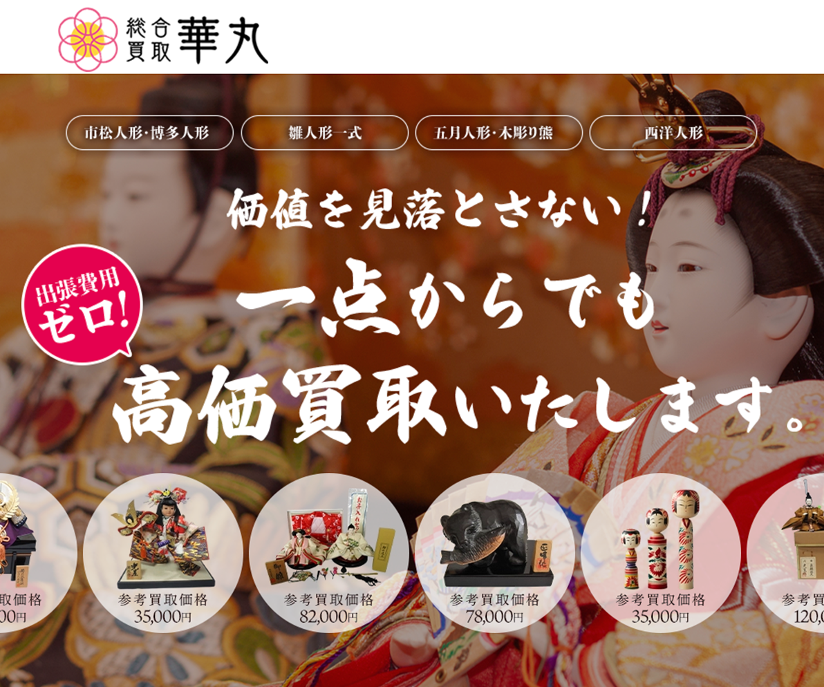 | 買取品目 | 雛人形、五月人形、市松人形、博多人形、日本人形、西洋人形、ビスクドール、リヤドロ、こけし、木彫り熊、陶器人形など |
